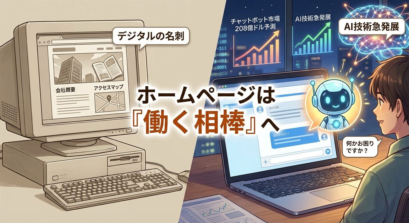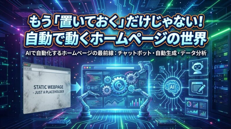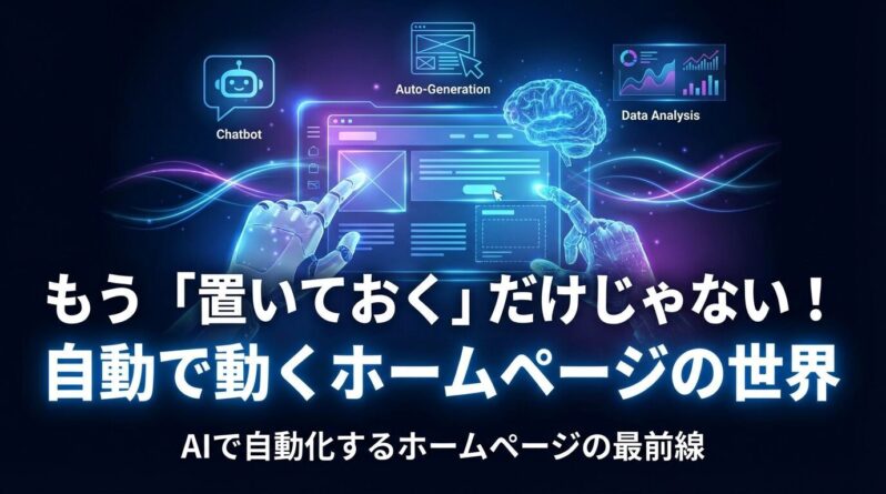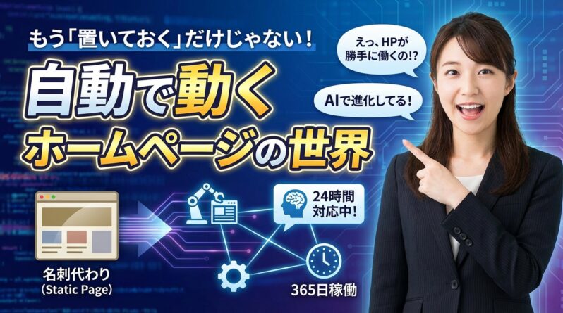 でも実は今、ホームページの世界が大きく変わっています。ただ情報を「置いておくだけ」のページから、24時間365日休まず自動で”はたらく”ホームページへ。AIや自動化技術の進化によって、ホームページが私たちの生活やビジネスを支える「働く相棒」になっているんです。