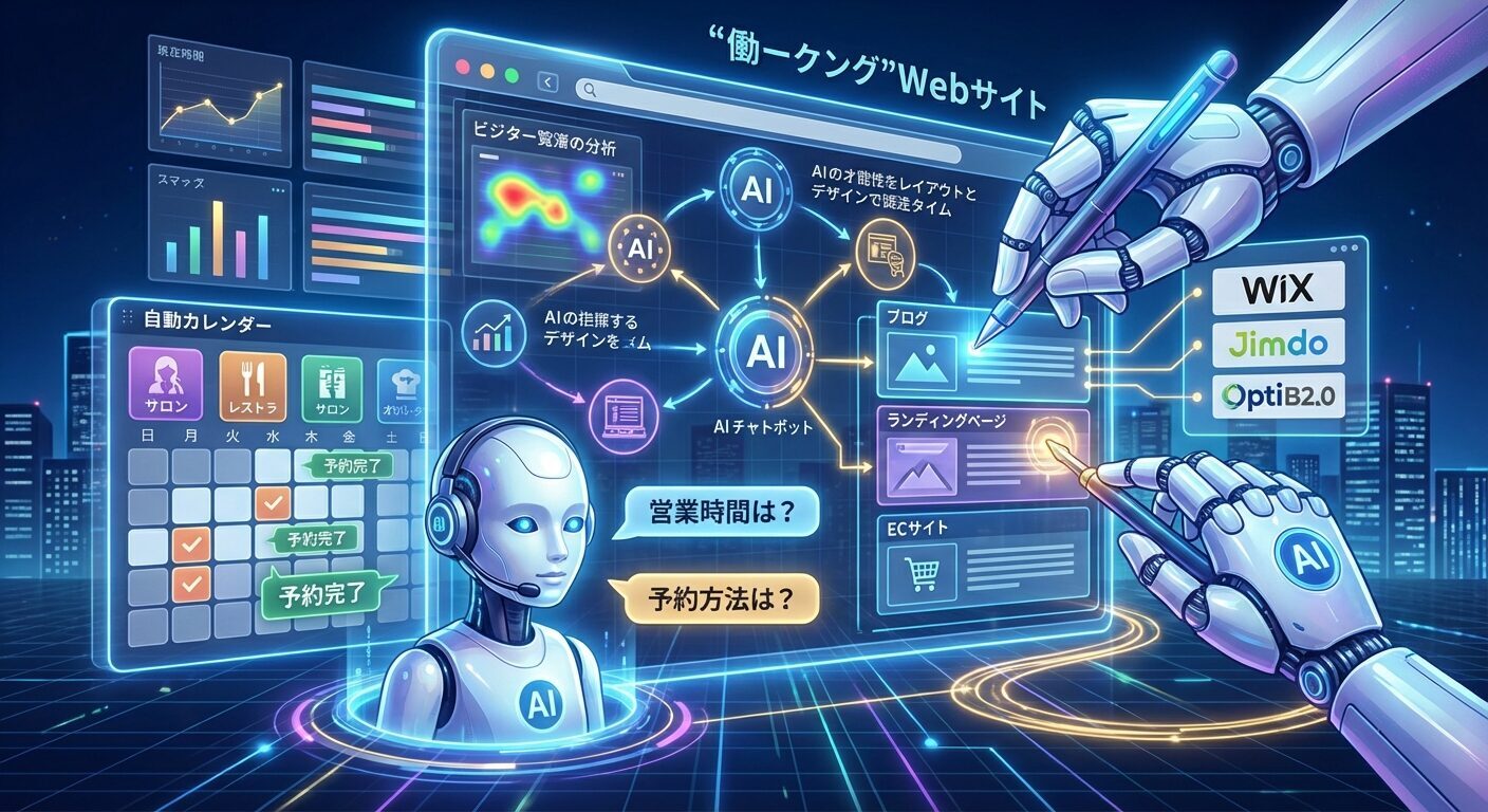 OptiB2.0のような最新ツールも、こうしたAI技術を活用してブログコンテンツやランディングページ、ECサイトまで自動生成できるようになっています。「置いておくだけ」だったホームページが、今では自ら考え、動き、成長する存在になっているんです。