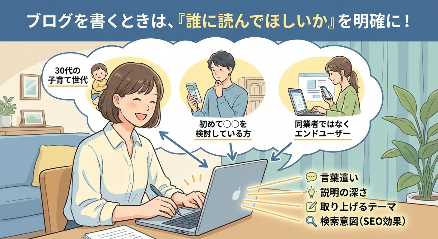 ターゲットがはっきりすると、言葉遣いや説明の深さ、取り上げるテーマが決まりやすくなります。「30代の子育て世代」「初めて〇〇を検討している方」「同業者ではなくエンドユーザー」など、具体的にイメージすることで、ぐっと書きやすくなるはずです。