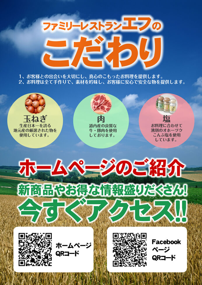 ファミリーレストランエフ様のホームページより抜粋