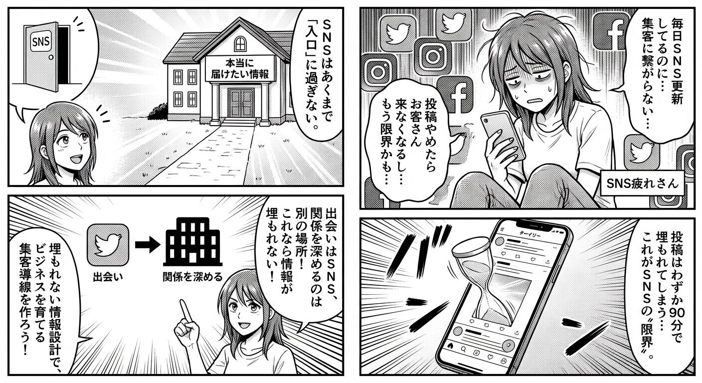 今こそ、SNSだけに頼る発信から一歩踏み出し、長期的に価値を生み出す集客導線の整備に取り組んでみませんか?
