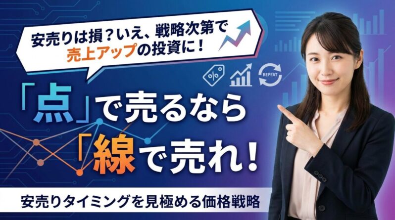 この記事では、売上を「1回の取引」という「点」ではなく、「顧客との継続的な関係」という「線」で捉える考え方をご紹介します。安売りのベストなタイミングと価格戦略の本質を理解することで、「損して得取れ」を正しく実践できる ようになるはずです。