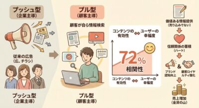 コンテンツマーケティングでは、売り込みではなく「顧客にとって価値ある情報」を提供することで、自然と信頼関係が生まれます。この信頼の蓄積が、ブランド認知の向上や顧客ロイヤルティの強化につながり、結果として売上増加に結びつくのです。